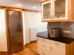 Im Erdgeschoss befinden sich das Wohnzimmer mit einem gemütlichen Kaminofen sowie eine Terrasse, welche einen freien Blick in die schöne Natur bietet. Ausserdem eine neue, gut ausgestattete Küche (inkl. Kaffeevollautomat) mit Essbereich und ein modernes Badezimmer mit Dusche.